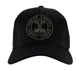 Stilige svart Truckercap med Thors Hammer | 100% Bomull